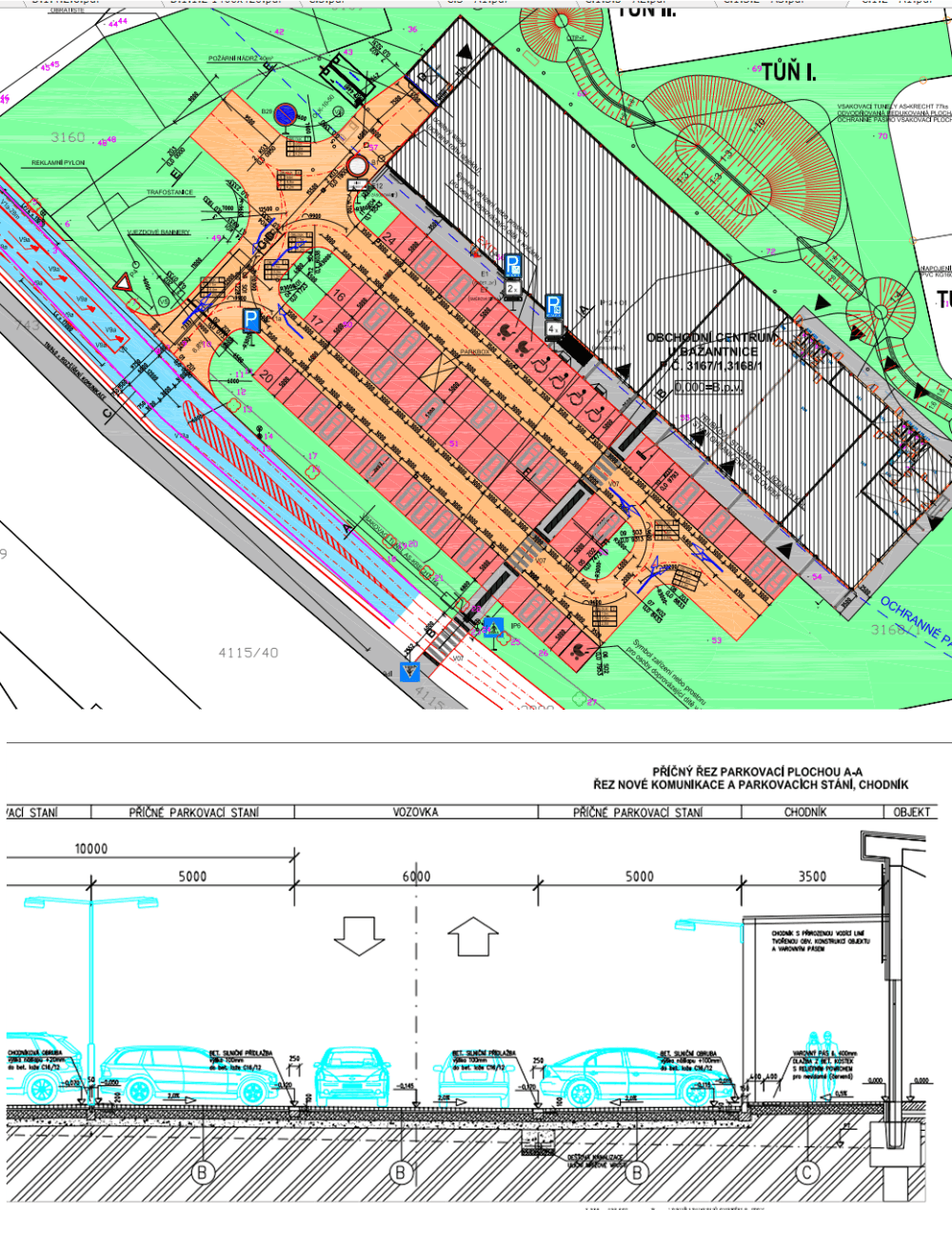 Komplexní dopravní napojení nového OC Billa s výstavbou parkovací plochy včetně nakládání s dešťovými vodami.