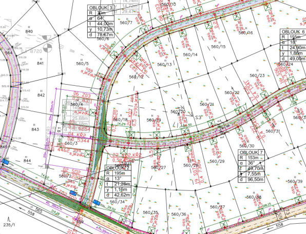 Projekční a činnost pro výstavbu sjezdů, parkovacích ploch, místních komunikací, vodovodních a kanalizačních řadů.