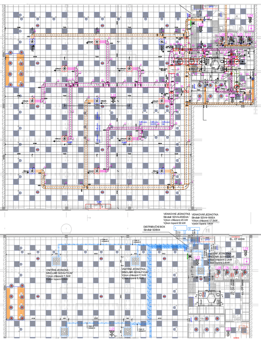 Projekt úprav interního mikroklimatu obchodní jednotky. Komplexní návrh rekuperace s centrální VZT jednotkou a vnitřními split jednotkami s v režimu chlazení/vytápění)