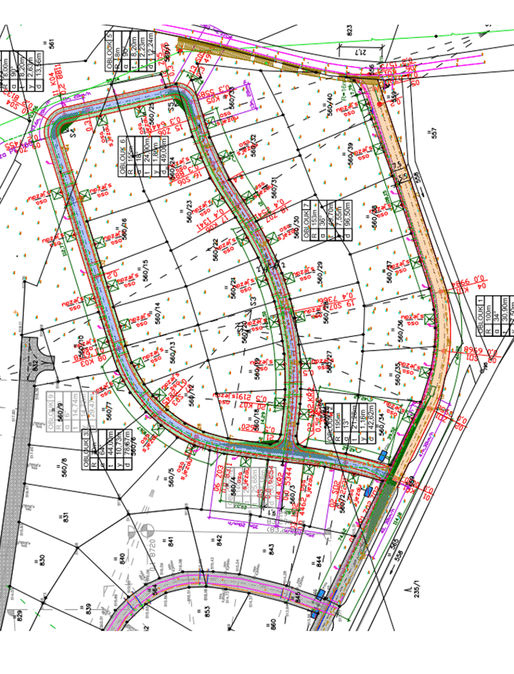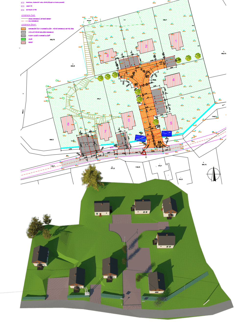 Výstavba 1. části nové místní komunikace s obytnou zónou pro novou zástavbu s rodinnými domy.
